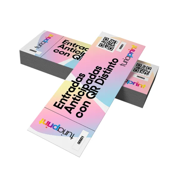 Seguridad y control de acceso: Nuestras entradas físicas incluyen opciones avanzadas de seguridad como códigos QR, numeración única o hologramas, lo que garantiza un control de acceso eficiente y previene fraudes o duplicados.